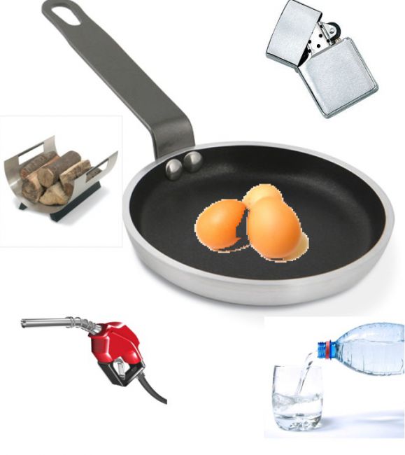 Nejprej pač je treba jest zato uzamte drva bencin užigalnik pa spečte jajca zalijte z vodo pa tko naprej